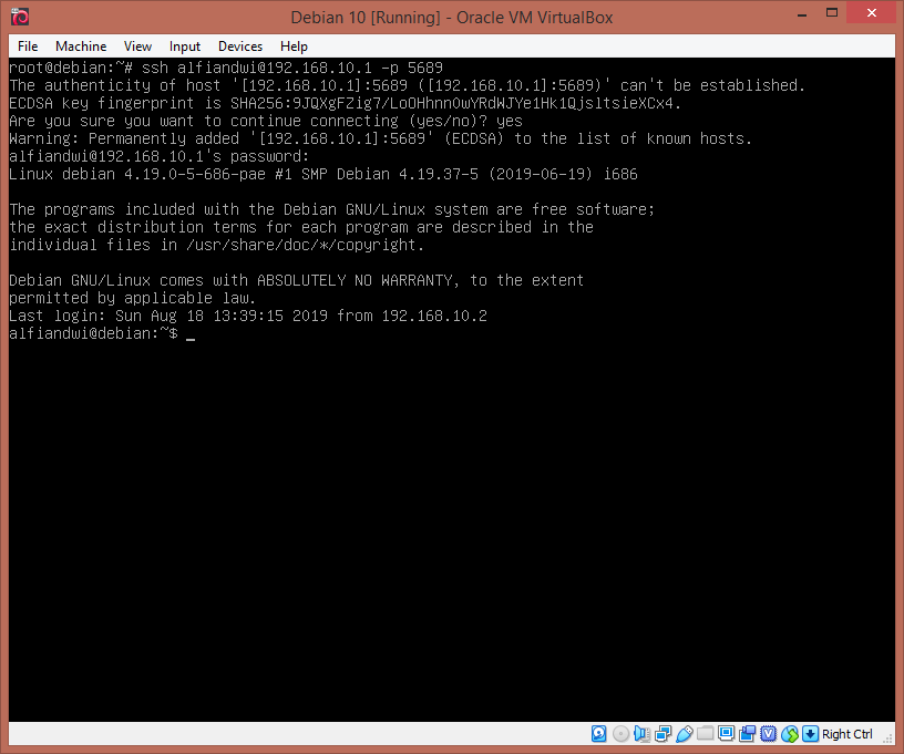 Jika kalian menggunakan VirtualBox untuk menjalankan debian, kalian bisa baca disini untuk mengkoneksikan Debian 10 dengan Komputer Fisik kalian :